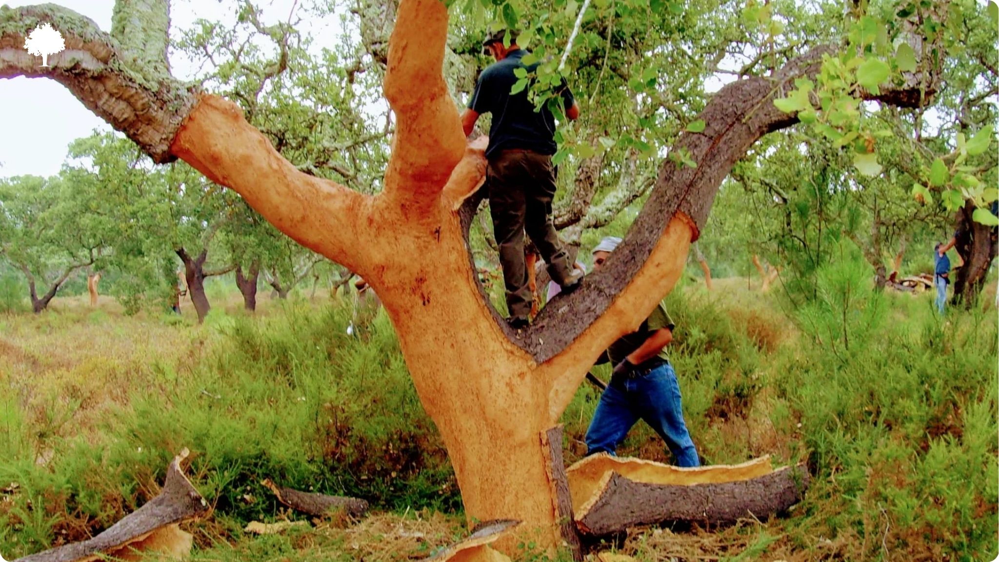 Pierwsze zbieranie kory: Kiedy drzewo osiągnie obwód około 70 cm, można zacząć zbierać z niego korę. Ta pierwsza kora ma nieregularną strukturę i jest zbyt twarda, aby mogła być używana do produkcji korków do wina.