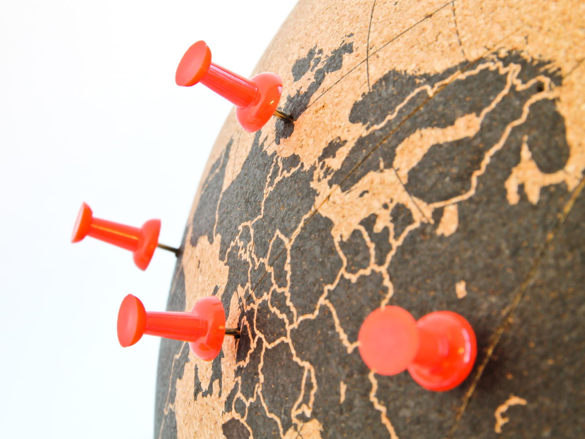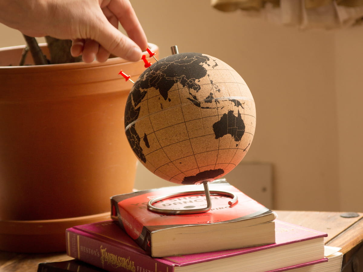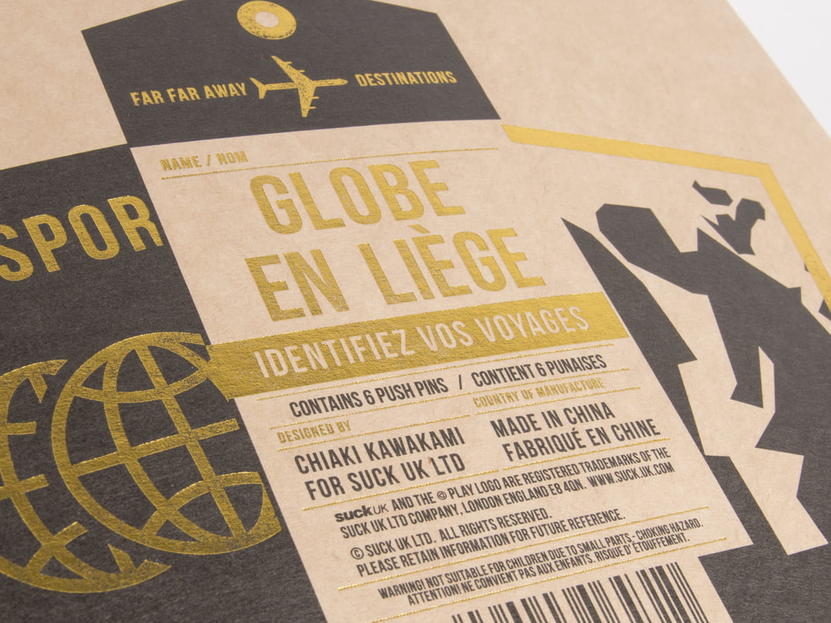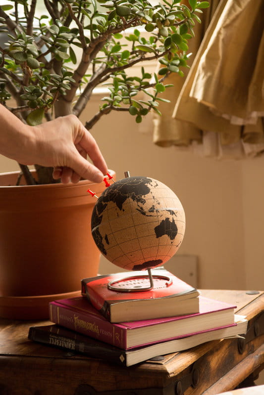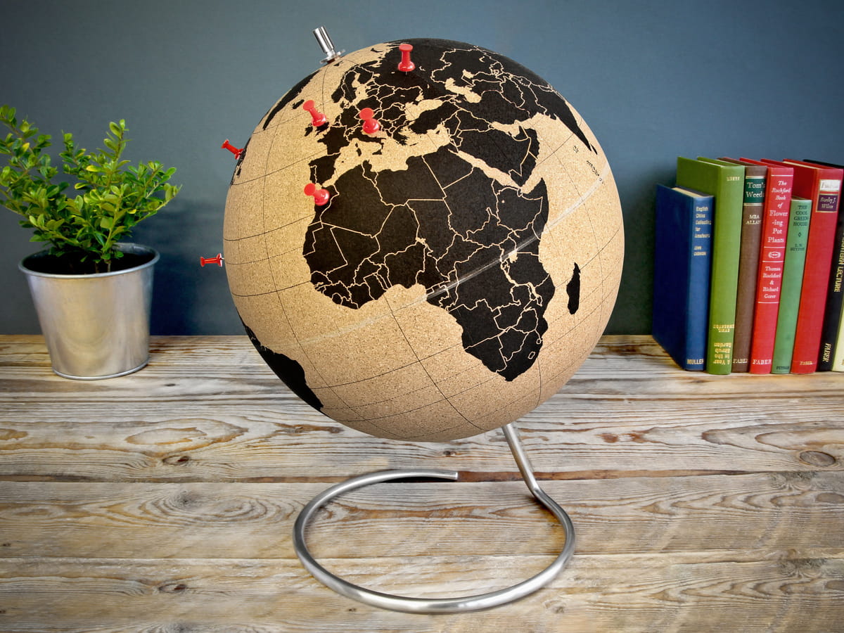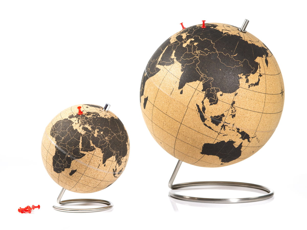 Przypinaj pinezki w punktach, które już odwiedziłeś oraz planuj następne eskapady! Niezależnie od tego, czy masz zamiar używać swojego globusa, aby oznaczyć swoje wymarzone miejsca docelowe, pokazać, gdzie znajdują się biura Twojej firmy, czy oddać go przyjacielowi, który jest zapalonym obieżyświatem, globus z korka będzie świetną ozdobą, którą możesz zamówić w dwóch rozmiarach: mały 14cm oraz duży 25cm średnicy. Pinezki umożliwiają dołączanie zdjęć i innych pamiątek bezpośrednio do globusa.