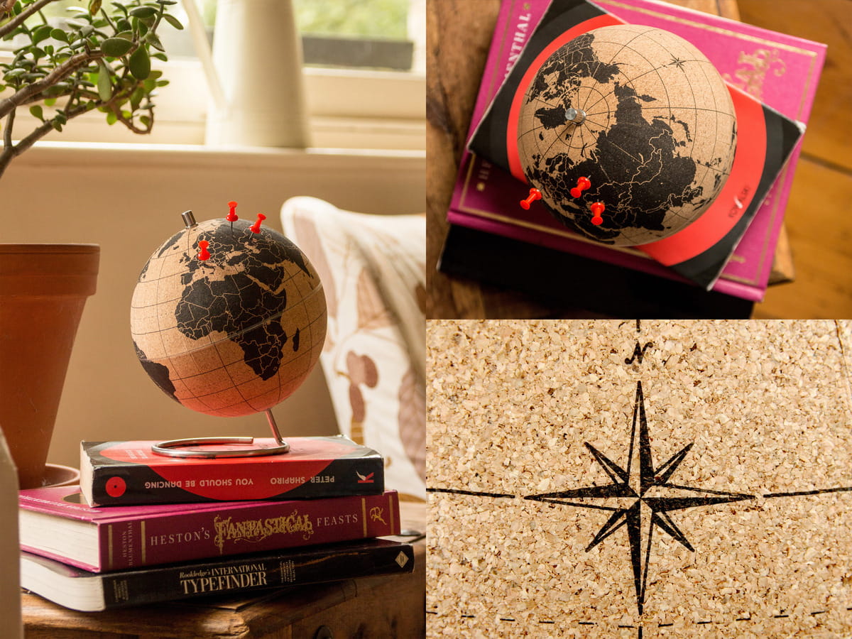 Zwykłe mapy wydają się płaskie i kwadratowe, gdy próbujesz opisać swoją ostatnią przygodę z podróżowaniem. Globus korkowy "Cork Globe" jest czymś o wiele więcej, gdyż uwzględnia perspektywę! Zakręć globusem i wskaż, gdzie byłeś, używając pinezek lub zaznacz, gdzie chcesz wyruszyć na następne wakacje! Ta oryginalna korkowa kula sprawi, że nawet najbardziej nieświatowi z Twoich znajomych zdadzą sobie sprawę, że podróżowałeś dosłownie po całym świecie!