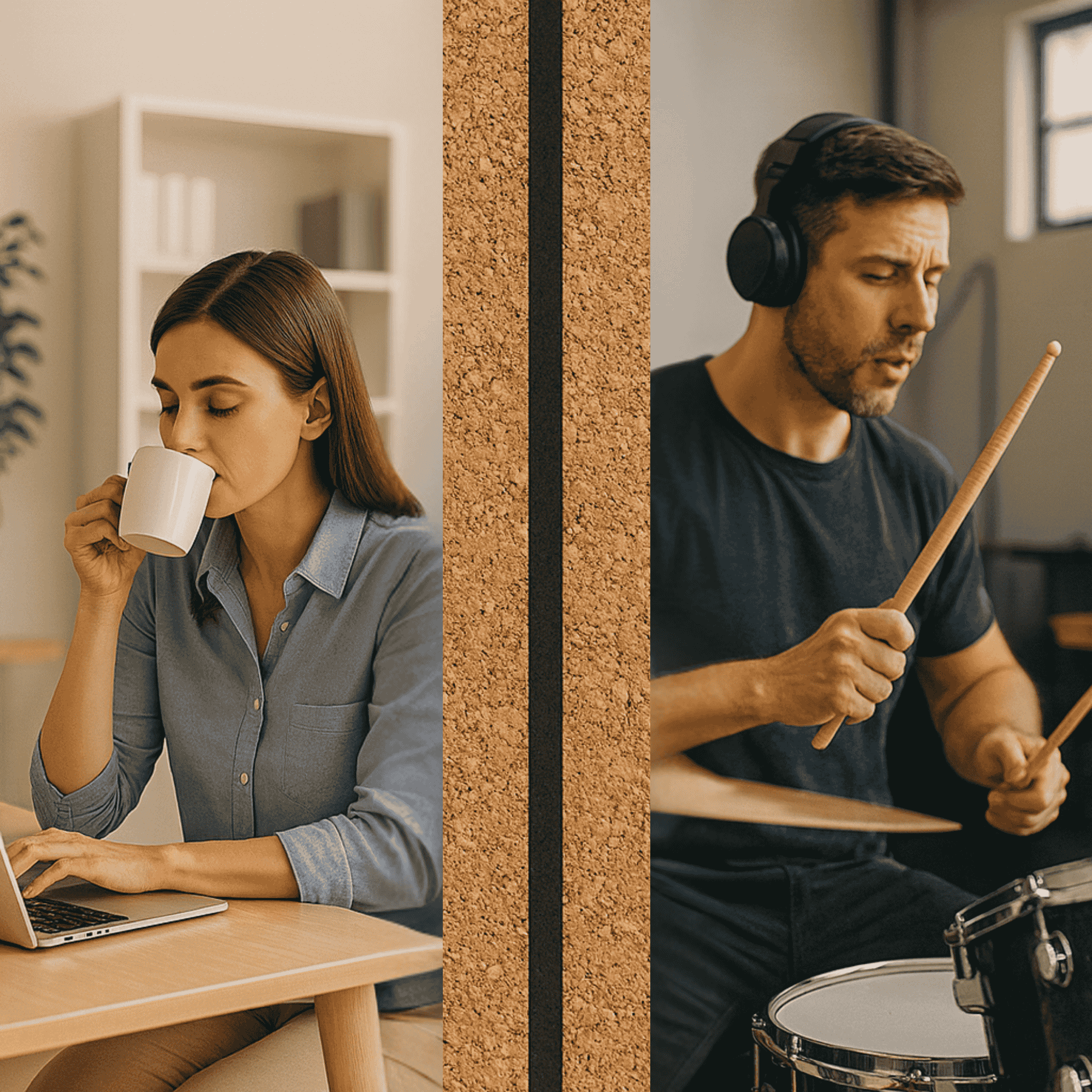 Ten typ paneli BitCork najlepiej sprawdza się do zastosowań domowych – szczególnie jeśli chcesz odciąć się od hałasu albo poprawić akustykę wewnątrz pomieszczenia.
