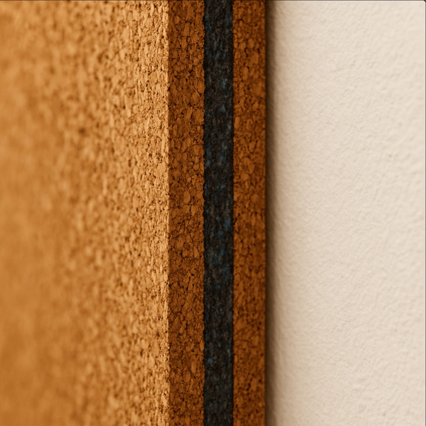 Pianka w środku odpowiada za zatrzymywanie ciepła i chłodu, bo ma wyjątkowo niski współczynnik przewodzenia. Z kolei korek izoluje i termicznie, i akustycznie, ale dodatkowo jest przyjemny w dotyku, naturalny i dużo bardziej estetyczny niż pianka. Pełni więc również funkcję dekoracyjną. Korek daje ciepłą powierzchnię i możliwość używania paneli jak tablicy korkowej.