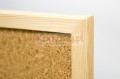 - Oprawa z drewna sosnowego nie zawiera sęków, jest precyzyjnie i estetycznie obrobiona oraz gwarantuje dużą sztywność oraz trwałość całej konstrukcji tablicy korkowej. Ramy nie wypaczają się, nie rozklejają i nie pękają pod wpływem działania słońca, wilgoci oraz temperatury,