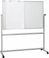 Mobilna dwustronna biała tablica suchościeralna obrotowa o powierzchni lakierowanej posiadająca właściwości magnetyczne. Nowy aluminiowy profil w kolorze srebrnym nadaje tablicy nowoczesny i oryginalny wygląd. Rama wykończona jest eleganckimi, popielatymi narożnikami. Solidna konstrukcja zapewnia stabilność produktu. Tablica obraca się wokół poziomej osi o 360°. Istnieje możliwość zablokowania jej w dowolnej pozycji, przy użyciu pokrętła bocznego w kolorze grafitowym. Podstawa jezdna wyposażona w kółka z systemem blokującym, ułatwiające przemieszczanie się tablicy w dowolne miejsce.
