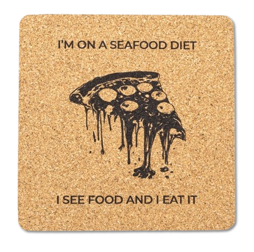 Podkładki na stół korkowe I'M ON A SEAFOOD DIET 5x100x100mm