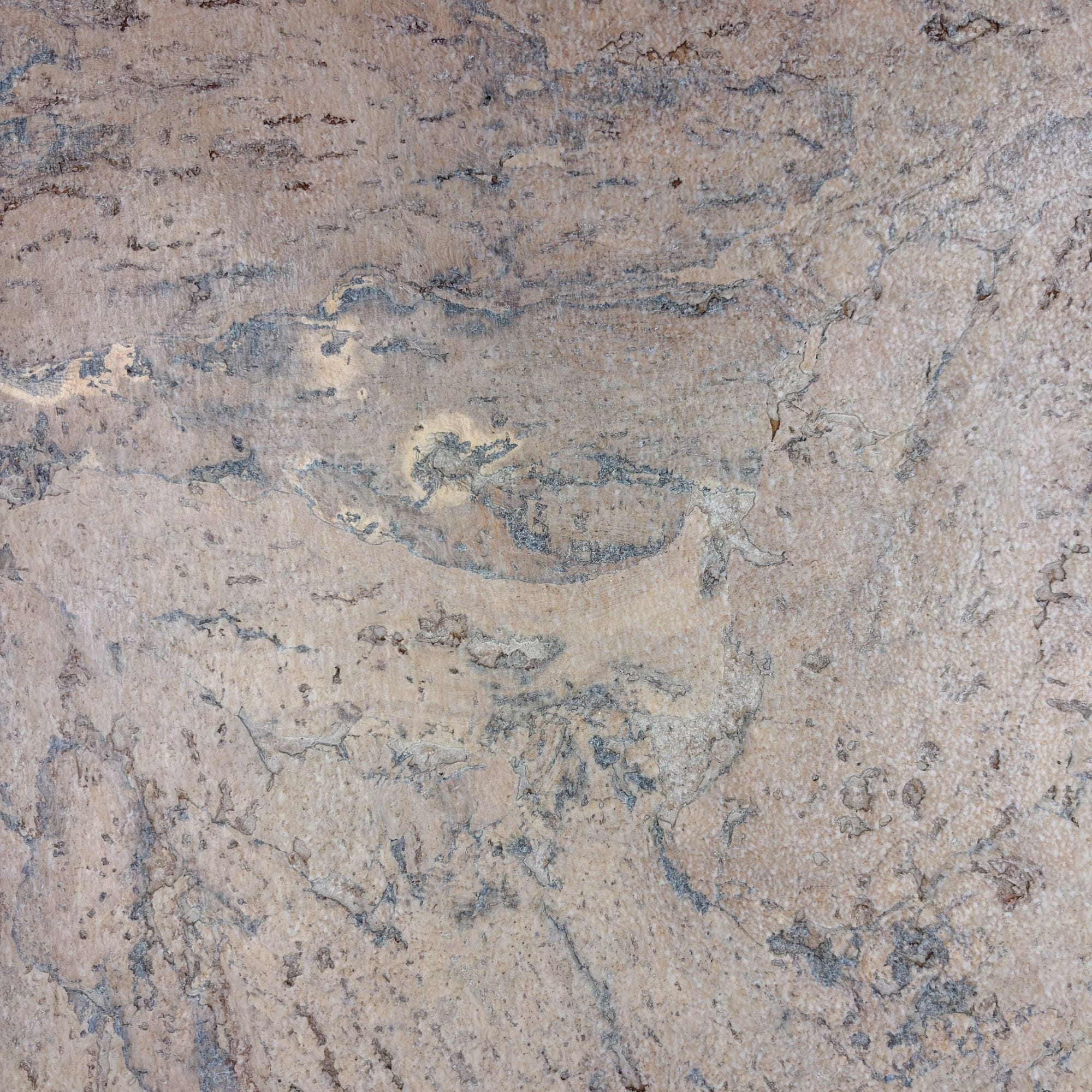 Całość jest ozdobiona nieregularnymi ciemniejszymi żyłkami oraz drobnymi, ciemniejszymi punktami, co dodaje powierzchni unikalnej głębi i wyrafinowanej tekstury.